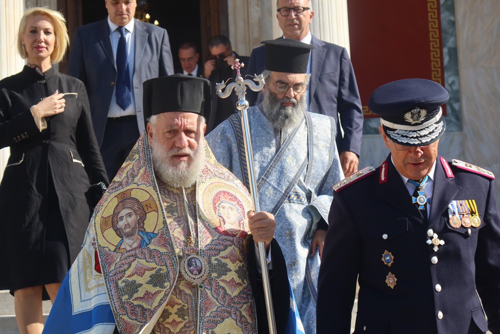 Ι.Μ. ΣΥΡΟΥ: Στον περικαλλή Καθεδρικό Ναό του Αγίου Νικολάου Ερμουπόλεως τελέσθηκε σήμερα το πρωί Δοξολογία επί τη Εθνική Εορτή της 28ης Οκτωβρίου 1940, προεξάρχοντος του Σεβασμιωτάτου κ. Δωροθέου Β’, με τη συμμετοχή των Εφημερίων της Σύρου
