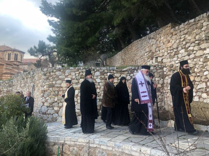 Ο Σεβασμιώτατος έκλεισε την ομιλία του λέγοντας ότι ο μακαριστός π. Χριστοφόρος επιστρέφει εκεί από όπου ξεκίνησε, στη Μονή της μετανοίας του, την Ιερά Μονή του Οσίου Λουκά, όπου θα ταφεί.