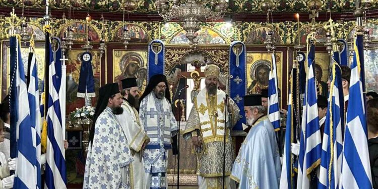 Ακολούθησε η πανηγυρική Δοξολογία, η οποία τελέστηκε με κατάνυξη και μεγαλοπρέπεια παρουσία των σχολείων της πόλεως και της περιοχής. Οι μαθητές, με τις γαλανόλευκες σημαίες τους, πλημμύρισαν τον ναό προσδίδοντας συγκίνηση, νεανικό παλμό και εθνική υπερηφάνεια στον εορτασμό, ως ζωντανή μαρτυρία της συνέχειας του τόπου και της ιστορίας του.