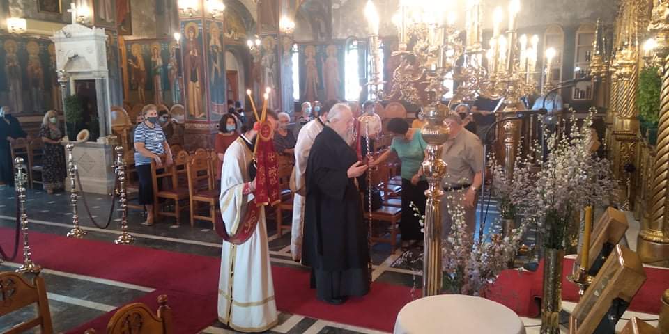 Την κυριώνυμο ημέρα της εορτής, το Σάββατο 17 Ιουλίου 2021, μετέβη στον Ναό ο Σεβασμιώτατος Μητροπολίτης Καρυστίας και Σκύρου κ. Σεραφείμ με συλλειτουργούς τον Πρωτοσύγκελλο Πανοσ Αρχιμ Νικόδημο Πόγκα και την συμμετοχή ιερέων του εφημερίου του ιερού ναού και των διακόνων.