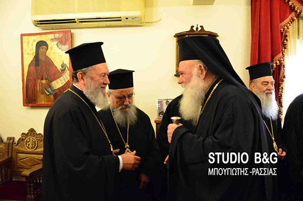 O Μητροπολίτης μας, από τα προπύλαια του Ι. Καθεδρικού Ναού καλωσορίζοντας τους εκλεκτούς προσκεκλημένους, προσφώνησε τον Μακαριώτατο Αρχιεπίσκοπο Αθηνών και πάσης Ελλάδος κ. Ιερώνυμο β’, ευχαριστώντας τόσο αυτόν όσο και τους Σεβασμιωτάτους Αρχιερείς, που αψήφησαν κόπους και αποστάσεις, ερχόμενοι στην πόλη μας ώστε να τιμήσουν τις Εορταστικές Εκδηλώσεις προς τιμήν του Αποστόλου Προστάτου μας Θείου Παύλου υπό τον τίτλο «Ζ’ ΚΟΡΙΝΘΟΥ ΠΑΥΛΕΙΑ 2013».