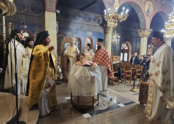 Πριν το τέλος της Θείας Λειτουργίας, ο Πανιερώτατος χειροθέτησε σε Πρωτοπρεσβύτερο τον πατέρα Μάριο Νεοφύτου. Στη συνέχεια, τίμησε τον κοινοτάρχη Σωτήριο Κυριάκου, για την πολυετή προσφορά του προς την εκκλησία της Παναγίας Χρυσοπαντάνασσας.