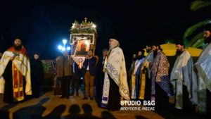 Μετά το θείο κήρυγμα ακολούθησε η λιτάνευση της Ιερός Εικόνας της Αγίας Ειρήνης σε όλη την κωμόπολη της Κίου προς ευλογία των κατοίκων , παιανιζούσης της Δημοτικής Φιλαρμονικής.
