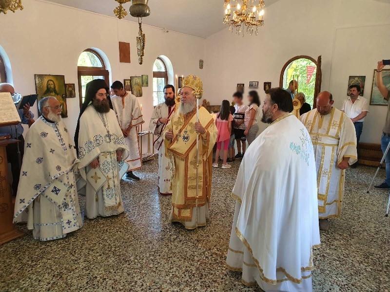 Την Δευτέρα 8 Ιουνίου 2020 το πρωί ο Σεβασμιώτατος, μετά των συνοδών του Κληρικών, μετέβη στο πανηγυρίζον Ι. Εξωκκλήσιο Αγίας Τριάδος-Αμπουδιώτισσας, στην Σέττα του Δήμου Ερετρίας. Εκεί τον υποδέχθηκαν οι Εφημέριοι των Ενορίών Άνω Βάθειας και Καλλιθέας, Σακελλάριοι Δημήτριος Αργύρης και Κωνσταντίνος Κιούσης.