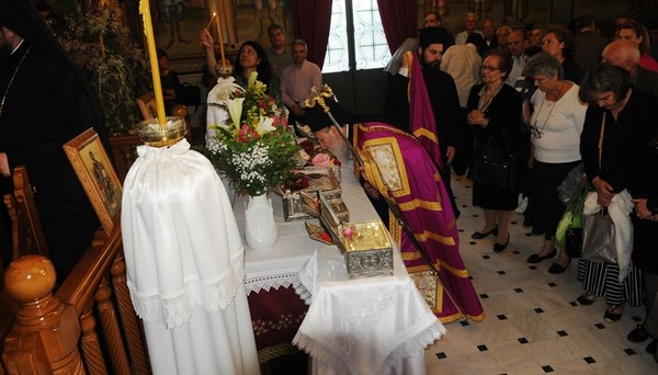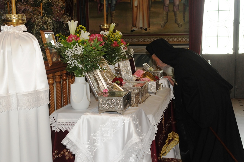 Την Κυριακή 7 Μαΐου 2017 το πρωί, χοροστάτησε στην Ακολουθάι του Όρθρου ο Σεβασμιώτατος Μητροπολίτης Κορίνθου κ. Διονύσιος και στη συνέχεια ετελέσθη Αρχιερατικό Συλλείτουργο, στο οποίο προεξήρχε ο Σεβασμιώτατος Μητροπολίτης Καρυστίας και Σκύρου κ. Σεραφείμ, συλλειτουργούντων και των αγίων Αρχιερέων Κορίνθου κ. Διονυσίου και Χαλκίδος κ. Χρυσοστόμου.