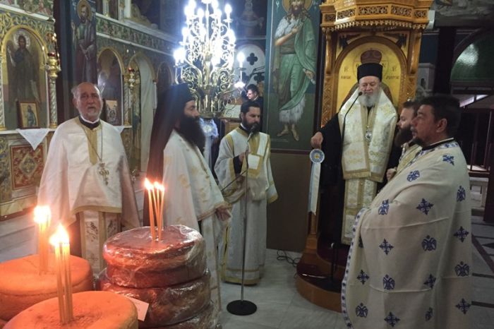 Τον Σεβασμιώτατο πλαισίωσαν ο Αρχιμ. Νεκτάριος Ευγενικός, ο Πρωτοπρεσβ. Σταμάτιος Μπασδέκης, Ο Πρωτοπρεσβ. Κωνσταντίνος Λοβέρδος – Εφημέριος του Ι. Ναού και οι Διάκ. Νικόλαος και Ευγένιος.