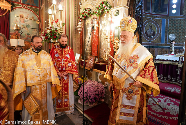 Ευχαριστώντας για μία ακόμη φορά τον Σεβασμιώτατο Μητροπολίτη Κηφισίας, Αμαρουσίου και Ωρωπού κύριο Κύριλλο για την αδελφική πρόσκλησή του, για την ευκαιρία να συλλειτουργήσουμε σήμερα επί τη μνήμη του αγίου μεγαλομάρτυρος Δημητρίου και να απευθυνθώ δι᾽ ολίγων προς την αγάπη σας, εύχομαι ταπεινώς ο εορταζόμενος άγιος Δημήτριος, «ο σοφώτατος εν διδαχαίς και στεφανίτης εν μάρτυσι», να τον στηρίζει και να τον ενισχύει στην ποιμαντορική του διακονία εις έτη πολλά, ώστε διά των σοφών διδαχών του να δίδει τοις εγγύς και τοις μακράν την μαρτυρία του Ιησού Χριστού.