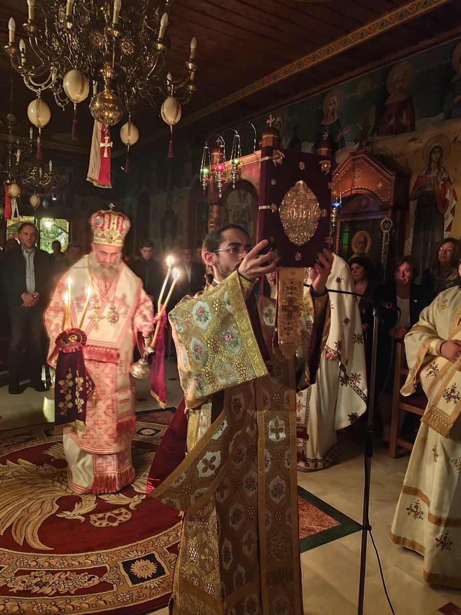 Χαίρομαι λοιπόν που φέτος μου δόθηκε η ευκαιρία να είμαστε όλοι μαζί, να τελέσουμε τις Ιερές Ακολουθίες του Όρθρου, του Εσπερινού εσείς νωρίτερα, αλλά και της Θείας Λειτουργίας. Να γευθούμε τον Χριστό, να είναι ανάμεσά μας ο Άγιός μας και να βιώσουμε αυτήν την Βασιλεία του Θεού, με πρώτον παρόντα τον Άγιο Νικόλαο τον οσιομάρτυρα και μέσα μαζί με Αυτόν και όλους εμάς για να χαιρόμαστε μέσα στη Βασιλεία του Θεού.