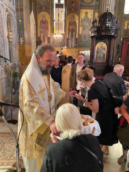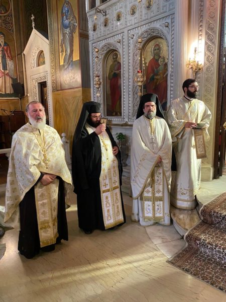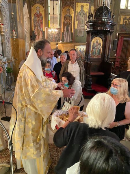 Στη συνέχεια τέλεσε το ετήσιο μνημόσυνο της μητέρας του προϊσταμένου του Ιερού Ναού π. Μάξιμου Ματθαίου.