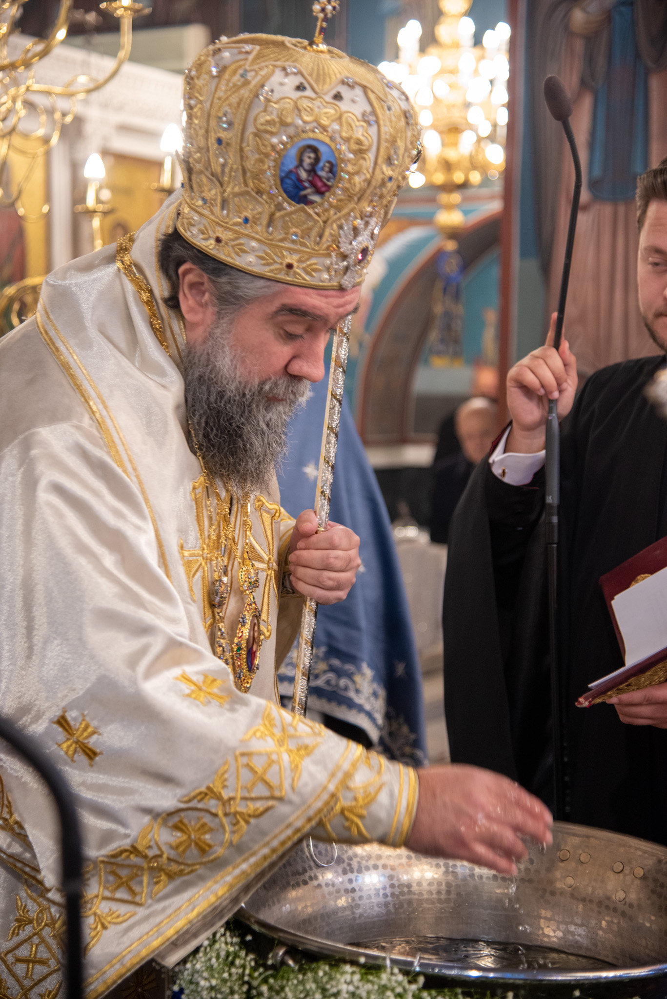 Επίκεντρο του λειτουργικού εορτασμού της λαμπράς και μεγαλειώδους αυτής εορτής της αγίας πίστεώς μας, στην Εκκλησία των Σερρών, απετέλεσε ο ιερός Μητροπολιτικός Ναός των Παμμ. Ταξιαρχών, όπου, σήμερα Παρασκευή 6 Ιανουαρίου 2023, ιερούργησε και ετέλεσε την ακολουθία του μεγάλου αγιασμού των υδάτων, ο Σεβ. Μητροπολίτης Σερρών και Νιγρίτης κ. Θεολόγος, συμπροσευχητικώς παρόντων των Βουλευτών του Νομού Σερρών κ. κ. Φ. Αραμπατζή, Θ. Λεονταρίδη, Αν. Χατζηβασιλείου, Κ. Μπούμπα και Ελ. Αβραμάκη, του Αντιπεριφερειάρχου Σερρών κ. Π. Σπυροπούλου, του Δημάρχου Σερραίων κ. Αλ. Χρυσάφη, του Προέδρου και μελών του Δημοτικού και Περιφερειακού Συμβουλίου Σερρών, του Διοικητού του Γ. Νοσοκομείου Σερρών κ. Ν. Φαρμάκη, του Προέδρου Ο.Ε.Β.Ε.Σ. κ. Σ. Κοτσαμπά, των στρατιωτικών, αστυνομικών και λοιπών αρχών καθώς και του πιστού λαού του Θεού, που υπερεπλήρωσε τον Μητροπολιτικό Ναό της πρωτευούσης πόλεως του Νομού Σερρών.