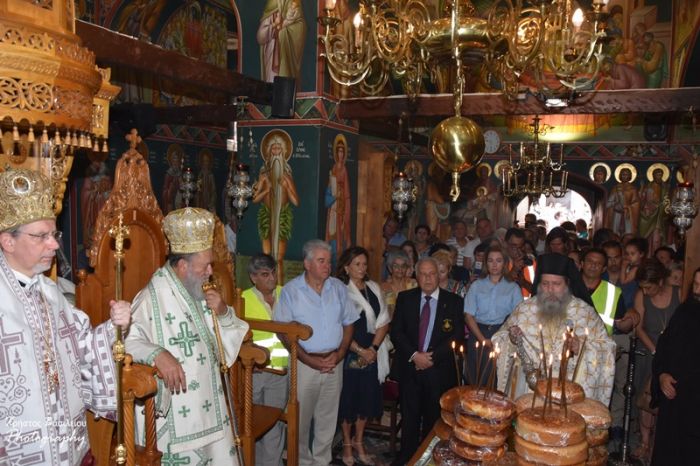 Οπως αναφέρει ανακοίνωση της Μητροπόλεως Χαλκίδος, εκεί, μαζί με την υπό τον Καθηγούμενο Αρχιμ. Γαβριήλ Εμμανουηλίδη Αδελφότητα της Ι. Μονής, υπεδέχθη τον Σεβασμιώτατο Μητροπολίτη Σουηδίας κ. Κλεόπα και τον Θεοφιλέστατο Επίσκοπο Σαλώνων κ. Αντώνιο – Γενικό Διευθυντή της ΕΚΥΟ, ο οποίος χοροστάτησε στον τελεσθέντα Μέγα Πανηγυρικό Εσπερινό.
