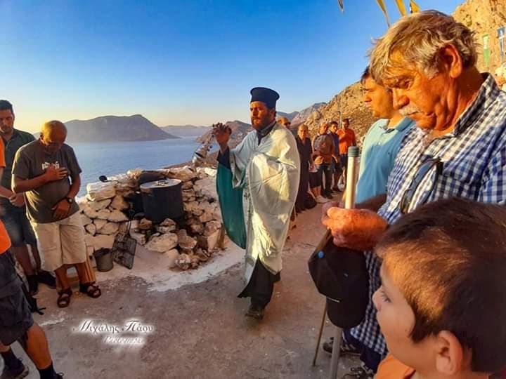 Τον Εσπερινό ετέλεσε ο π. Κων/νος Σμαλιός, παρουσία πολυπληθούς εκκλησιάσματος, που και φέτος ανηφόρισε την δύσκολη και κουραστική διαδρομή, αλλά πανέμορφη και με μοναδική θέα, για να βρεθεί στο ειδυλλιακό εκκλησάκι.