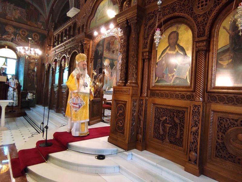 O Σεβασμιώτατος κ. Χρυσόστομος στο κήρυγμά του αναφέρθηκε στις αρετές της επιείκειας προς τους αδελφούς και της εσωτερικής ειρήνης και ηρεμίας, που χαρακτήριζαν τον Άγιο Τιμόθεο, ο οποίος ακολουθούσε το παράδειγμα επιείκειας του ίδιου του Ιησού Χριστού, όπως αναγνώσθηκε και στην σημερινή ενδιάτακτη ευαγγελική περικοπή (Λκ 9, 51-57), δηλαδή ήταν επιεικής με τους ασεβώς φερομένους στους μαθητές και Αποστόλους Του, αλλά, όπου χρειαζόταν ήταν και πολύ αυστηρός.