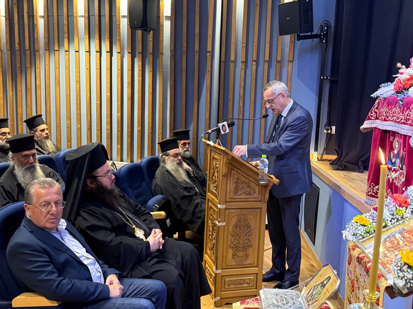 Μηνύματα απέστειλαν ο Οικουμενικός Πατριάρχης Βαρθολομαίος, ο Πατριάρχης Αλεξανδρείας Θεόδωρος, καθώς και εκπρόσωποι των Πατριαρχείων Ιεροσολύμων, Σερβίας και Βουλγαρίας, ενώ παρόντες ήταν οι Μητροπολίτες Ναυπάκτου Ιερόθεος, Χίου Μάρκος, Λαρίσης Ιερώνυμος και Καστορίας Καλλίνικος. Κεντρικός εισηγητής ήταν ο Καθηγητής Απόστολος Κραλίδης του Αριστοτελείου Πανεπιστημίου Θεσσαλονίκης, ο οποίος ανέλυσε τη σχέση του αρχαίου ελληνικού θρησκευτικού βιώματος με τις σύγχρονες μορφές νεοπαγανισμού.