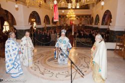Ανήμερα της εορτής ο Σεβ. Μητροπολίτης κ. Ευγένιος χοροστάτησε στην ακολουθία του Όρθρου και στη συνέχεια ιερούργησε, συμπαραστατούμενος από τους οικείους Εφημερίους. Ο Σεβ. Μητροπολίτης στην εμπνευσμένη ομιλία του στο πλήθος των πιστών αναφέρθηκε στη φανέρωση «του απ᾽ αιώνος μυστηρίου» μέσω της Υπεραγίας Θεοτόκου, η οποία έγινε «της Εύας η λύτρωσις και χαρά του κόσμου και αγαλλίασις του γένους ημών». Όπως τόνισε η Θεοτόκος υπήρξε η Υπέρμαχος Στρατηγός σε όλους τους εθνικοαπελευθερωτικούς αγώνες του Γένους μας, το οποίο ο Θεός έχει ευεγρετήσει πολλαπλώς, όπως με την ελληνική γλώσσα που είναι η γλώσσα του Ευαγγελίου και των μεγάλων Πατέρων της Εκκλησίας μας.