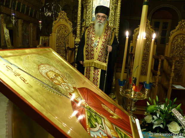 Στην Ιερά Ακολουθία προεξήρχε ο Σεβασμιώτατος Μητροπολίτης Καστορίας κ. Σεραφείμ, με τη συμμετοχή του Πρωτοσυγκέλλου Αρχιμ. Αθανασίου Γιαννουσά και πλειάδος Κληρικών της τοπικής Εκκλησίας.