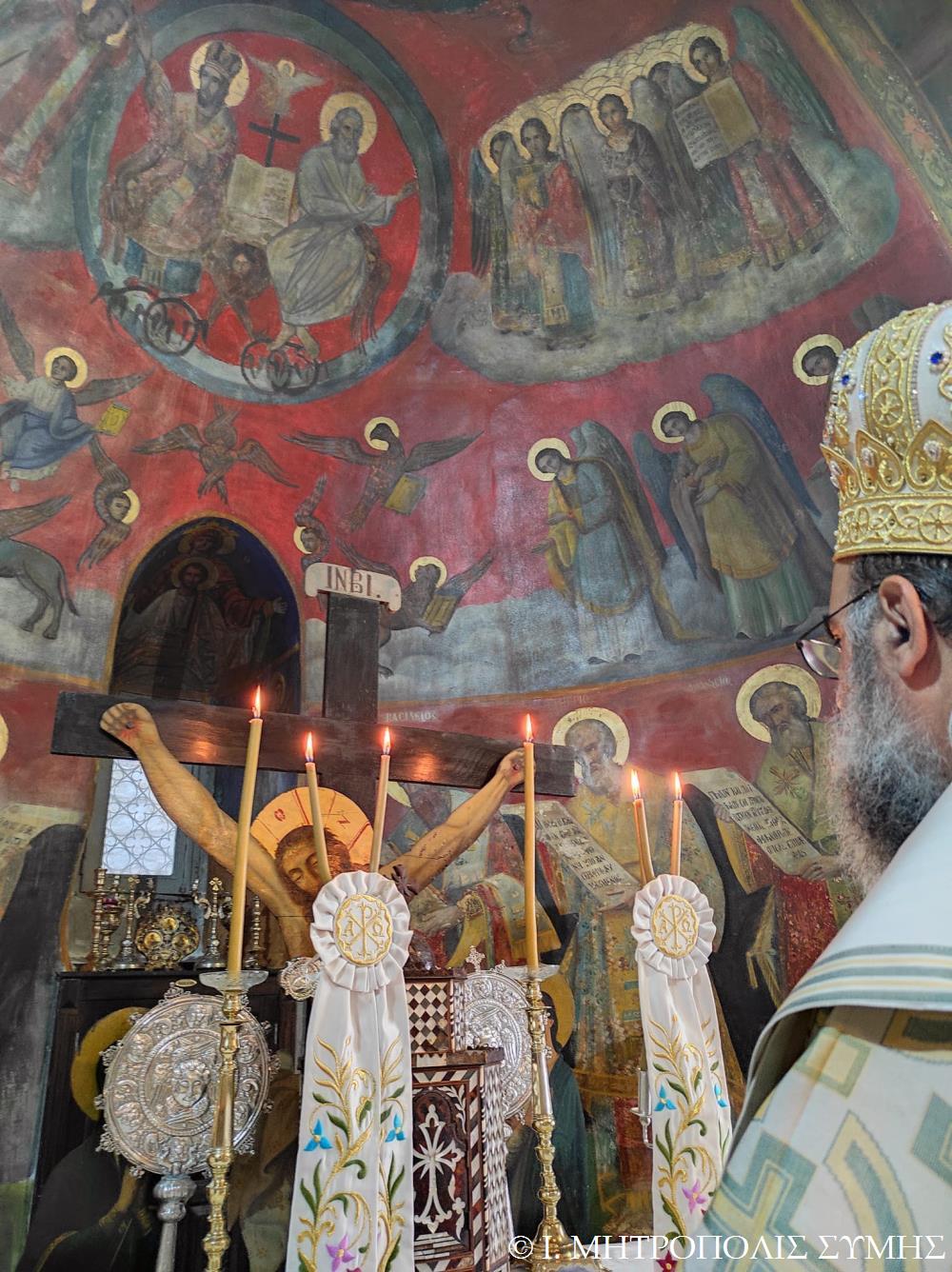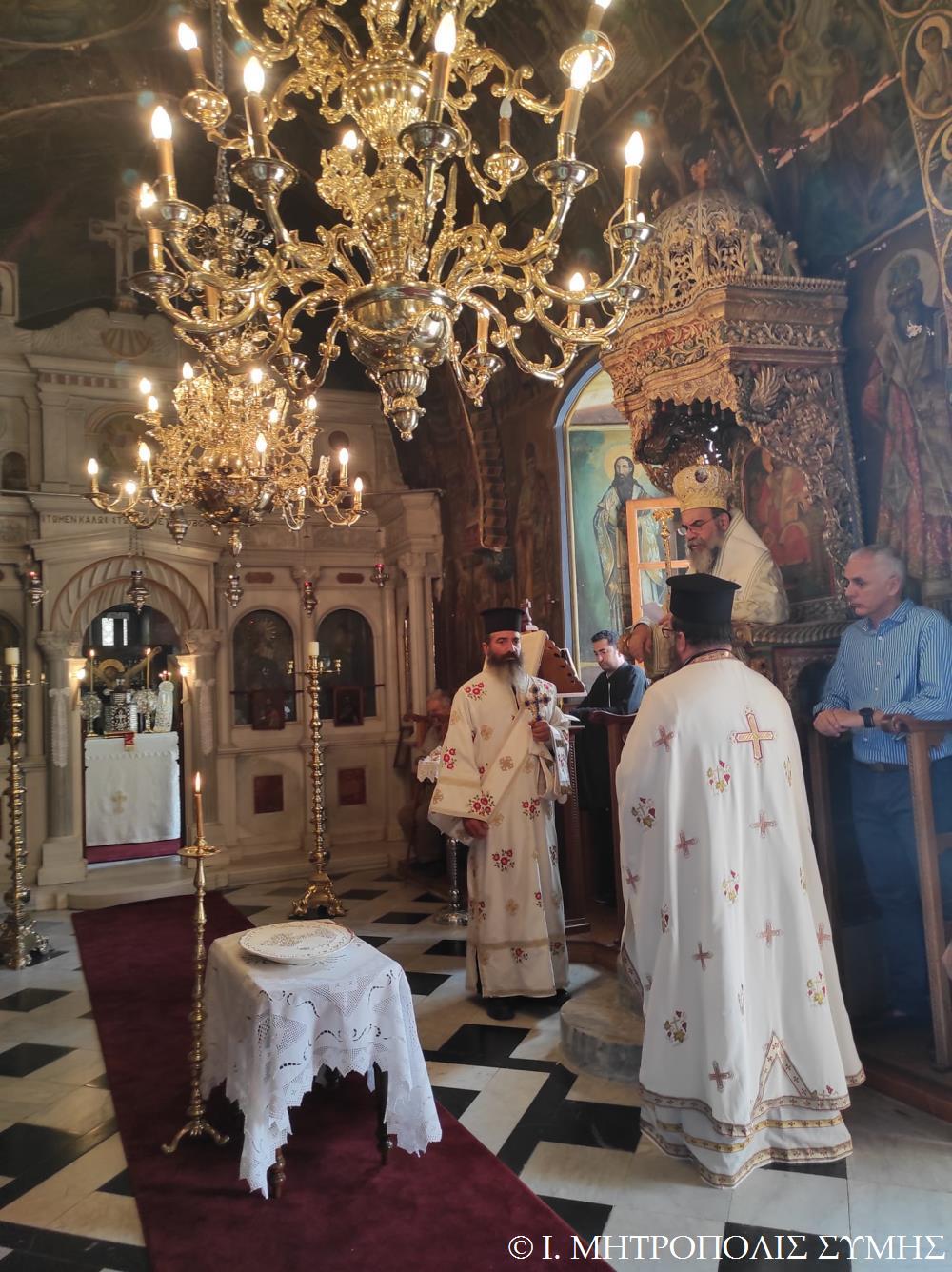 Ι.Μ. ΣΥΜΗΣ: Σήμερα 21η Αυγούστου 2022, Κυριακή Ι΄ Ματθαίου, ο Σεβ. Μητροπολίτης μας κ. Χρυσόστομος χοροστάτησε στον Όρθρο και τέλεσε την Θεία Λειτουργία στον Ενοριακό Ι. Ναό Αγίου Νικολάου Άνω Χώρας Σύμης, προκειμένου να τιμήσει την σύναξη της «Παναγίας του Χάρου», αντιγράφου της Εικόνος εκείνης της Νήσου των Λειψών, η οποία εικονίζει την Παναγία να κρατά στην μητρική της αγκάλη τον Χριστό, όχι όπως συνηθίζεται ως βρέφος, αλλά κρεμάμενο Νεκρό επί του Σταυρού του μαρτυρίου Του.