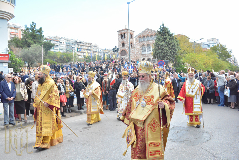 Το πρωί τελέστηκε Πολυαρχιερατικό Συλλείτουργο χοροστατούντος του Μητροπολίτη Θεσσαλονίκης Ανθίμου. Στις 11:00 κατέφτασε ο Προκόπης Παυλόπουλος για την Δοξολογία.