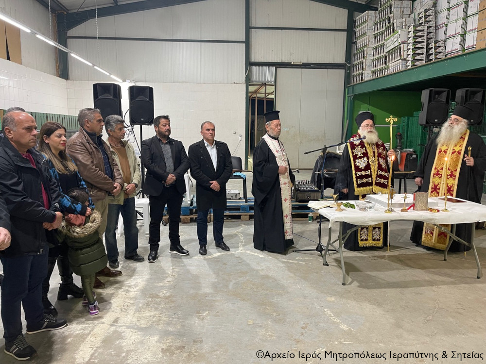 Ι.Μ. ΙΕΡΑΠΥΤΝΗΣ: Το απόγευμα της Πέμπτης 19 Ιανουαρίου 2023 ο Σεβ. Μητροπολίτης Ιεραπύτνης και Σητείας κ. Κύριλλος ανταποκρινόμενος σε ευγενή πρόσκληση του Προέδρου και των Μελών του Δ.Σ. του Αγροτικού Συνεταιρισμού «Κρητικό Περβόλι», μετέβη στις πρότυπες και υπερσύγχρονες εγκαταστάσεις παραλαβής και συσκευασίας κηπευτικών προϊόντων του Συνεταιρισμού στο Κεντρί Ιεράπετρας, τέλεσε αγιασμό και ευλόγησε την Βασιλόπιτα.