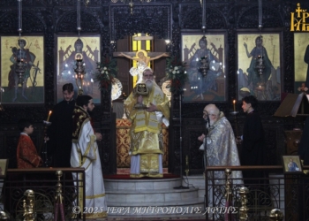 Η πανηγυρική Αρχιερατική Θεία Λειτουργία ολοκληρώθηκε με δέηση που εψάλη ενώπιον των Ιερών Λειψάνων υπέρ υγείας των νοσούντων αδελφών μας.