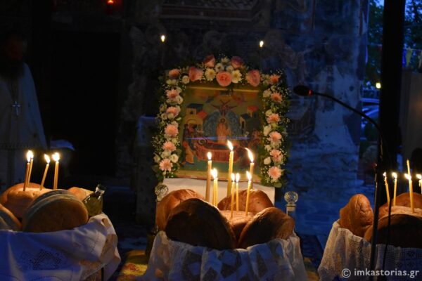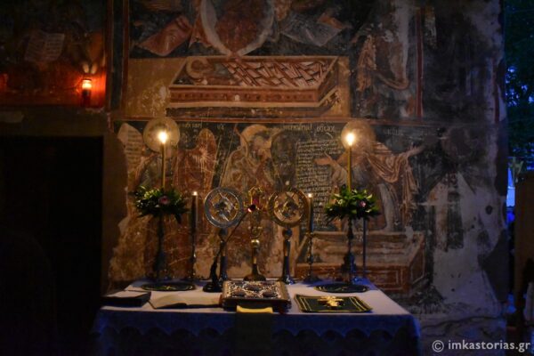 Το πρωί της Κυριακής τελέστηκε η Αρχιερατική Θεία Λειτουργία, με την πρωινή δροσιά της λίμνης και τα παιχνιδίσματα να δίνει και μια ευχάριστη φυσική νότα στην πνευματική πανδαισία της αναιμάκτου ιερουργίας. Απευθυνόμενος στο πλήθος των Καστοριανών που προσήλθε στην υπαίθρια αυτή ακολουθία, ο Σεβασμιώτατος αναφέρθηκε στην Παναγία ως οικονόμο. Εξήγησε πώς οικονόμησε τη σωτηρία του ανθρωπίνου γένους και συνεχίζει έως σήμερα να οικονομεί κάθε άνθρωπο : τη σωτηρία του, τα αγαθά του κτλ. Γι’ αυτό και στο Άγιον Όρος απαντάται και με το προσωνύμιο «Οικονόμισσα».