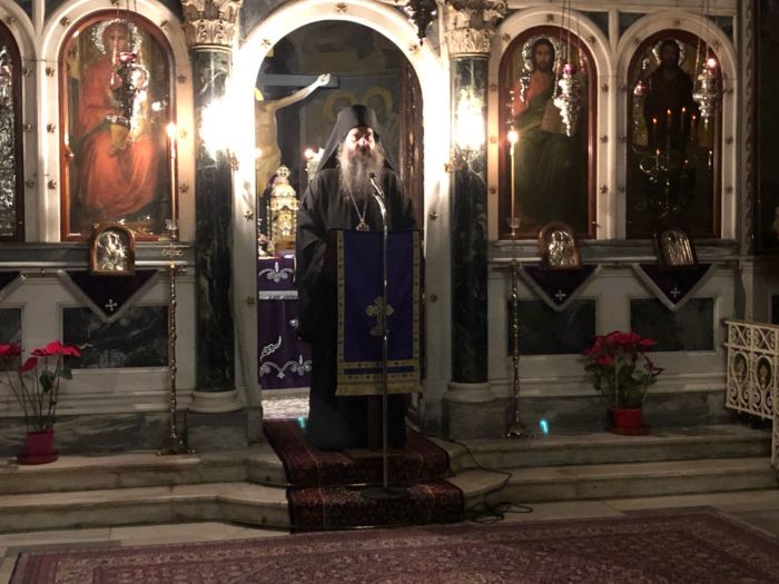 Ο Σεβασμιώτατος ευχήθηκε σε όλους καλή και Αγία Τεσσαρακοστή. Ενώ, στο τέλος του Εσπερινού ακολούθησε ο ο ασπασμός της συγγνώμης μεταξύ του επισκόπου, των ιερέων και των πιστών.