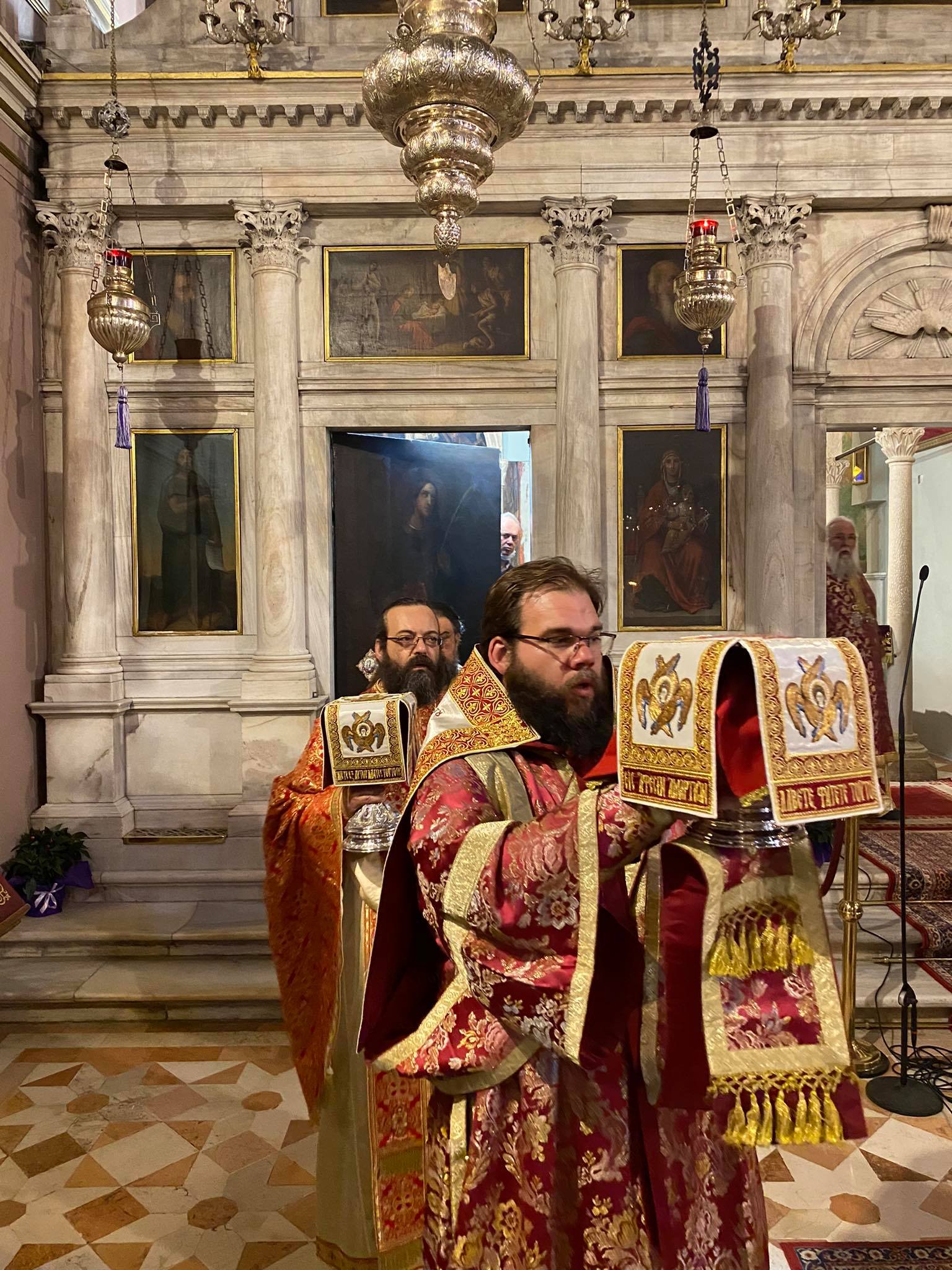 Προσφωνώντας τους πιστούς ο κ. Νεκτάριος τόνισε ότι την ημέρα αυτή η Εκκλησία μάς υπενθυμίζει ιδιαιτέρως την ανάγκη για συμμετοχή στο μυστήριο της Θείας Ευχαριστίας. «Γίνετε μέτοχοι του σώματός μου και του αίματός μου» , μας λέει ο Κύριός μας. Για να συμμετέχουμε όμως εις ζωήν αιώνιον και όχι εις κρίμα ή εις κατάκριμα χρειάζεται να έχουμε την κοινωνία του Αγίου Πνεύματος, να έχουμε ανακαινισμένο τον εσώτατο άνθρωπο. Η ανακαίνιση έρχεται διά της μετανοίας, διά της εσωτερικής ερεύνης στην καρδιά μας. Καλούμαστε να γίνουμε κοινωνοί της χάριτος του ιδίου του Θεού. Η θεία κοινωνία δεν είναι για το καλό του χρόνου, όπως κάποιοι λένε. Είναι για όλο τον χρόνο, για όλη την ζωή μας. Αυτή είναι η ορθόδοξη παράδοση και η ζωή της Εκκλησίας. Ας ελέγχουμε λοιπόν τους εαυτούς μας και ας μετέχουμε στο μυστήριο εν αφελότητι καρδίας.