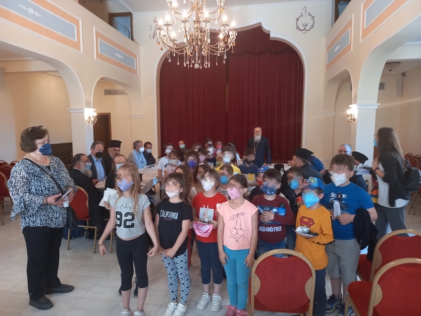 Μετά το πέρας της σύντομης ομιλίας του ο Σεβασμιώτατος έβγαλε αναμνηστικές φωτογραφίες με τα παιδιά, σε ανάμνηση της επισκέψεως τους στο Επισκοπείο, τους προσέφερε «ευλογίες», κεράσματα και το πρόσφατα επανεκδοθέν υπό της Ι. Μητροπόλεως μας βιβλίο του αειμνήστου Μητροπολίτου Γόρτυνος & Μεγαλοπόλεως κυρού Ιερεμίου με τίτλο «ΣΥΝΤΟΜΕΣ ΕΙΣΑΓΩΓΕΣ ΣΤΗΝ ΠΑΛΑΙΑ ΚΑΙ ΣΤΗΝ ΚΑΙΝΗ ΔΙΑΘΗΚΗ ΟΙ ΔΥΟ ΠΡΟΣ ΚΟΡΙΝΘΙΟΥΣ ΕΠΙΣΤΟΛΕΣ ΤΟΥ ΑΠΟΣΤΟΛΟΥ ΠΑΥΛΟΥ», προτρέποντας τους να το δώσουν προς μελέτη στους γονείς τους αλλά και να το φυλάξουν, ώστε όταν μεγαλώσουν να το μελετήσουν καλύτερα και να γνωρίσουν τι, ο Απ. Παύλος, έγραφε στους προγόνους μας Κορινθίους.