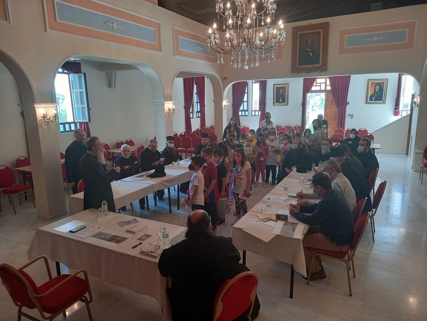 Ο Σεβασμιώτατος δέχτηκε με πολύ χαρά τους μικρούς Μαθητές και τους Δασκάλους τους και τους ομίλησε για τον Απ. Παύλο και την ιστορία της Τοπική μας Εκκλησίας.