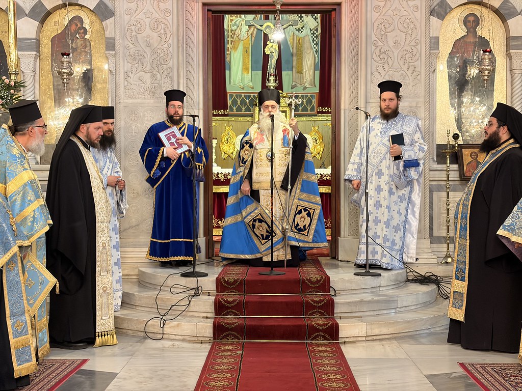 Το εσπέρας της Τρίτης 24 Μαρτίου 2026, ο Μητροπολίτης Κορίνθου κ. Παύλος χοροστάτησε στον Ι. Ναό Ευαγγελισμού της Θεοτόκου Αθικίων, πλαισιωμένος από πλειάδα Ιερέων και Διακόνων.