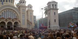 Σήμερα, παραμονή της εορτής του Πολιούχου, θα ψαλεί, στις 6 το απόγευμα, στο Νέο Ιερό Ναό, Μέγας Αρχιερατικός Εσπερινός, με τη συμμετοχή και αρχιερέων από άλλες Μητροπόλεις.