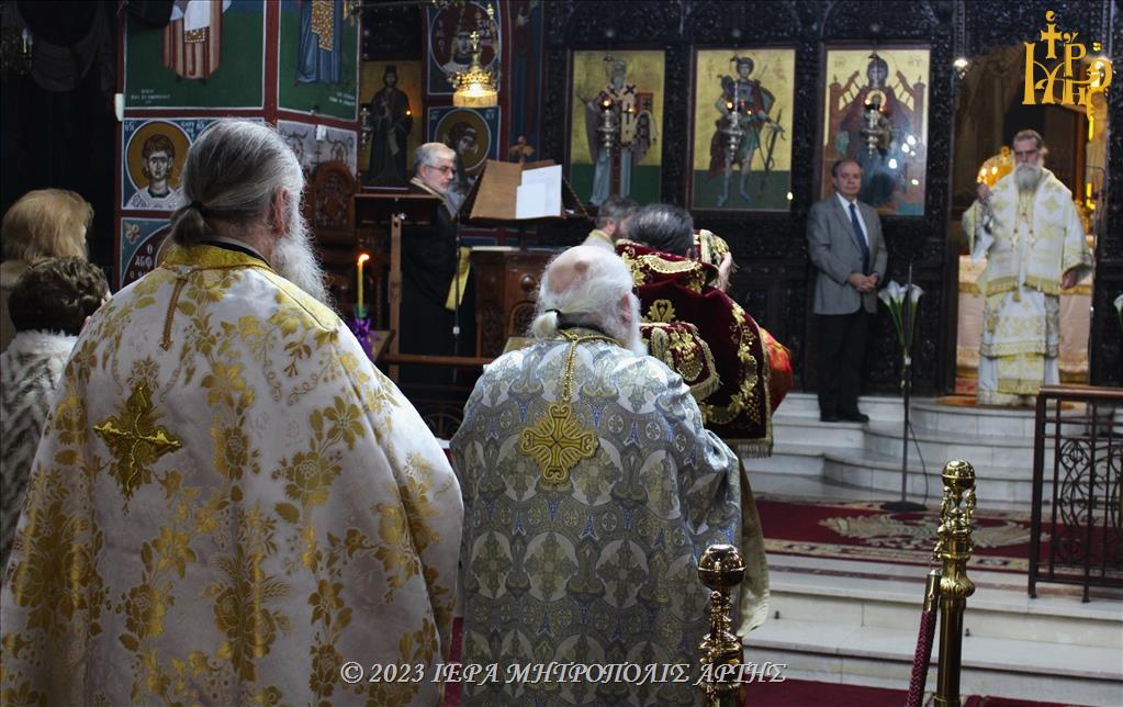 Επίσης, ελιτανεύθησαν, κατά το Τυπικό, οι Ιερές Εικόνες. Στο πέρας της Θείας Λειτουργίας, ετελέσθη κατ’ έθος, προεξάρχοντος του Σεπτού Ποιμενάρχου μας, επιμνημόσυνος Δέησις, υπέρ αναπαύσεως των Ευεργετών της πόλεως Άρτης, της Μητροπόλεως Άρτης και των ευαγών Ιδρυμάτων και εμνημονεύθησαν και τα θύματα του προσφάτου τραγικού σιδηροδρομικού δυστυχήματος των Τεμπών.