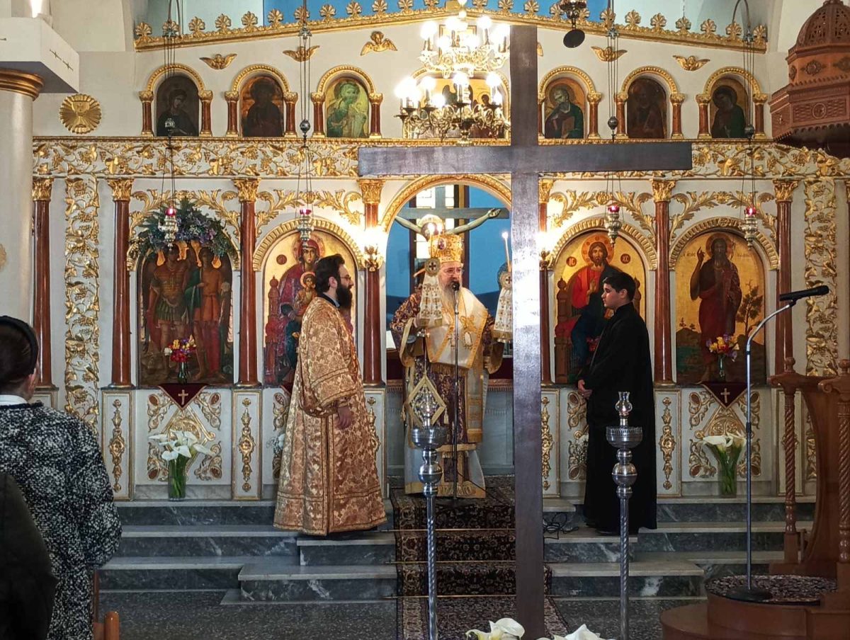Πριν το πέρας της Αρχιερατικής Θείας Λειτουργίας τελέσθηκε η Ακολουθία της προσκύνησης του Τιμίου Σταυρού και στη συνέχεια ο Μητροπολίτης απευθύνθηκε στο πολυπλυθές εκκλησίασμα αναφερόμενος εν συντομία στη σπουδαιότητα της κλήσεως των νέων μας στο λειτούργημα της Ιερωσύνης και την σημασία της συμβολής της οικογένειας και της Εκκλησίας στην απόφαση αυτή.