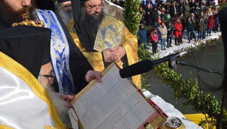 Προέτρεψε δε να εκμεταλλευόμαστε τον χρόνο της ζωής μας προσευχόμενοι σε κάθε περίσταση.Μετά την τέλεση του Μεγάλου Αγιασμού στον ιερό Καθεδρικό ναό ο Σεβασμιώτατος επικεφαλής ιεράς πομπής του ιερού κλήρου, των τοπικών αρχόντων και του λαού πορεύθηκε κατά το έθος στην περιοχή Κιουπρί, όπου ανέμεναν οι ιερείς και οι πιστοί όλων των ενοριών της πόλεως, και τέλεσε τον καθαγιασμό των υδάτων. Στους γενναίους κολυμβητές, που έπεσαν στο νερό για τον Σταυρό, ο Σεβασμιώτατος έδωσε αναμνηστικούς σταυρούς.