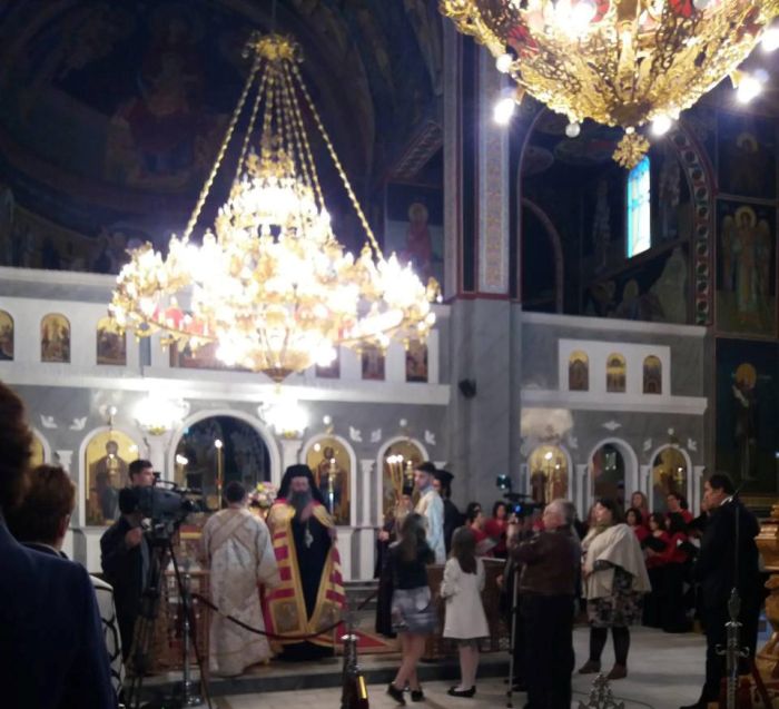 Η υποδοχή πραγματοποιήθηκε στον Ιερό Ναό Αγίου Στυλιανού Καλλιθέας, ενώ στη συνέχεια ακολούθησε η Ακολουθία των Δ’ Χαιρετισμών, χοροστατούντος του Σεβασμιωτάτου Μητροπολίτη Κίτρους, Κατερίνης και Πλαταμώνος κ. Γεωργίου, όπου έψαλλε η καταξιωμένη γυναικεία βυζαντινή χορωδία «ΑΙ ΑΔΟΥΣΑΙ».