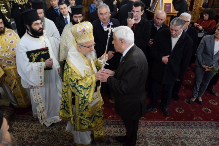 Ακολούθησε η επίσημη Δοξολογία, παρουσία του Εξοχωτάτου Προέδρου της Ελληνικής Δημοκρατίας κ. Προκoπίου Παυλοπούλου, ενώ στη συνέχεια, ενώπιον του Προέδρου, ξεκίνησε η ιερά Πομπή τιμής στους Πεσόντες της Εξόδου.