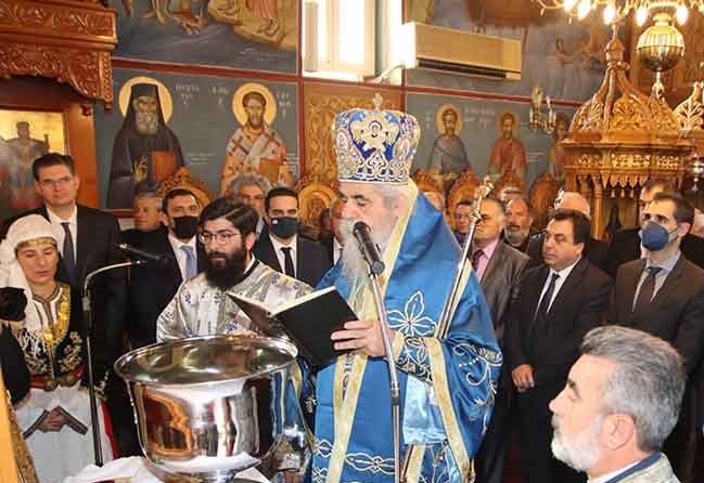 Ο Σεβασμιώτατος Μητροπολίτης μας κ.κ. Αθανάσιος χοροστάτησε κατά την ακολουθία του Όρθρου των Θεοφανίων, τέλεσε την Πανηγυρική Θεία Λειτουργία, και την ιερή ακολουθία του Μεγάλου Αγιασμού ομιλήσας καταλλήλως, στον Ιερό Ναό του Νικολάου πλαισιούμενος από τον Εφημέριο του Ναού Αιδεσιμότατο π. Παναγιώτη Αθανασόπουλο και τον Ιερολογιότατο Διάκονο π. Βασίλειο Σμέρο, παρουσία των Πολιτικών και Στρατιωτικών Αρχών, καθώς επίσης εκπροσώπων φορέων και Συλλόγων.