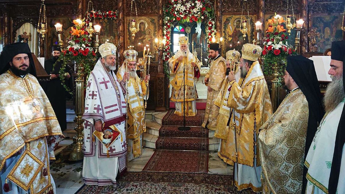 Το πρωί της Δευτέρας, 21ης Νοεμβρίου 2022, κυριωνύμου ημέρας της μεγάλης Θεομητορικής Εορτής των Εισοδίων της Υπεραγίας Θεοτόκου, στον Όρθρο χοροστάτησε ο Σεβασμιώτατος Μητροπολίτης Πέτρας και Χερρονήσου κ. Γεράσιμος και ακολούθησε Αρχιερατικό Συλλείτουργο, συλλειτουργούντων των Σεβασμιωτάτων Μητροπολιτών Σερβίων και Κοζάνης κ. Παύλου, Κισάμου και Σελίνου κ. Αμφιλοχίου, Καλαβρύτων και Αιγιαλείας κ. Ιερωνύμου, Πέτρας και Χερρονήσου κ. Γερασίμου, Ρεθύμνης και Αυλοποτάμου κ. Προδρόμου και του Θεοφιλεστάτου Επισκόπου Βαβυλώνος κ. Θεοδώρου, συμπροσευχομένου από του Ιερού Βήματος του Σεβασμιωτάτου Μητροπολίτου Λάμπης, Συβρίτου και Σφακίων κ. Ειρηναίου.
