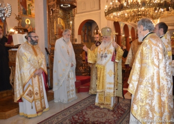 Λίγο πριν την Απόλυση, ο Σεβασμιώτατος ευχήθηκε εόρτια σε όλους τους προσελθόντες προσκυνητές και ιδιαίτερα σε όσους και όσες φέρουν το όνομα της Αγίας Μαρίνας.