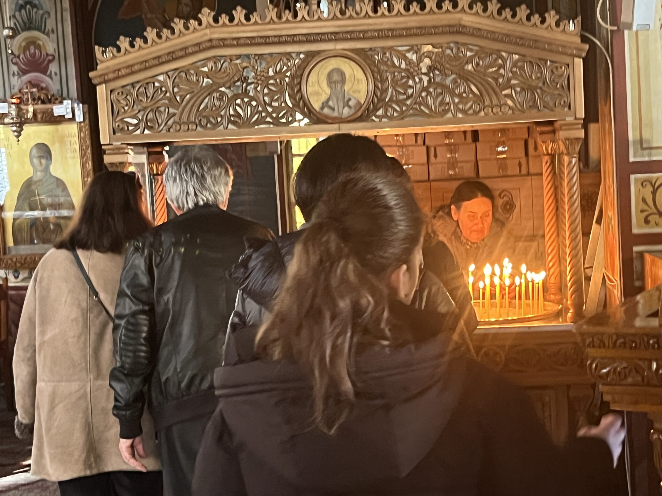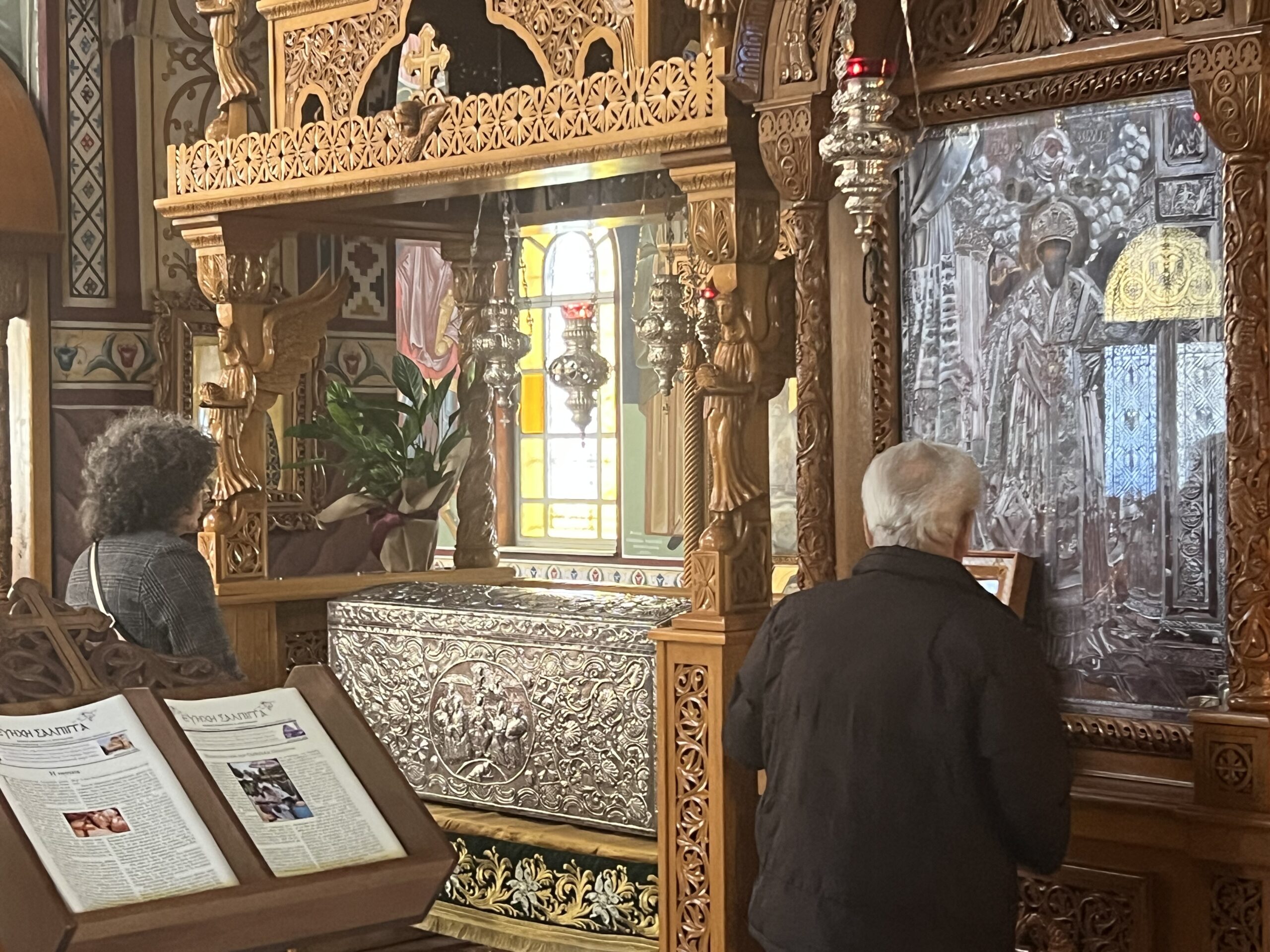 Από τις πρώτες πρωινές ώρες έως αργά το βράδυ, άνδρες, γυναίκες, ηλικιωμένοι αλλά και οικογένειες με παιδιά σχηματίζουν ουρές για να προσκυνήσουν το ιερό λείψανο του μεγάλου Πατέρα της Εκκλησίας.