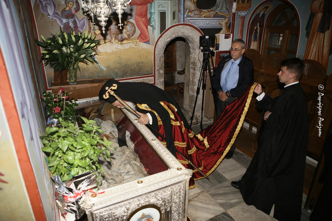 Σας ευχαριστούμε που μας δώσατε αυτήν την ευκαιρία διότι ήρθαμε προστρέχοντας, ασμένως ανταποκρινόμενοι για να λάβουμε φως εκ φωτός που έλαβε ο ίδιος αλλά και να τον παρακαλέσουμε να μας μεταγγίσει την αφθαρτισμένη ζωή την οποία ο ίδιος έλαβε και διά την οποίαν οπωσδήποτε ο ίδιος πρόσεχε και εις την οποίαν οπωσδήποτε μας καλεί με τη δυνατή μεσιτεία και πρεσβεία του και όλους εμάς με πρώτη την μετά από αυτόν ασκούμενη αδελφότητα η οποία για τον ίδιο υπήρξε η οικογένειά του».