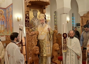 Προεξάρχει ο Μητροπολίτης Διδυμοτείχου κ. Δαμασκηνός και συγχοροστατούν των Μητροπολιτών Σταγών & Μετεώρων κ. Θεόκλητος και Θεσσαλιώτιδος και Φαναριοφερσάλων κ. Τιμόθεου και από θρόνου ο επιχώριος Μητροπολίτης Τρίκκης και Σταγών κ. Χρυσόστομος.