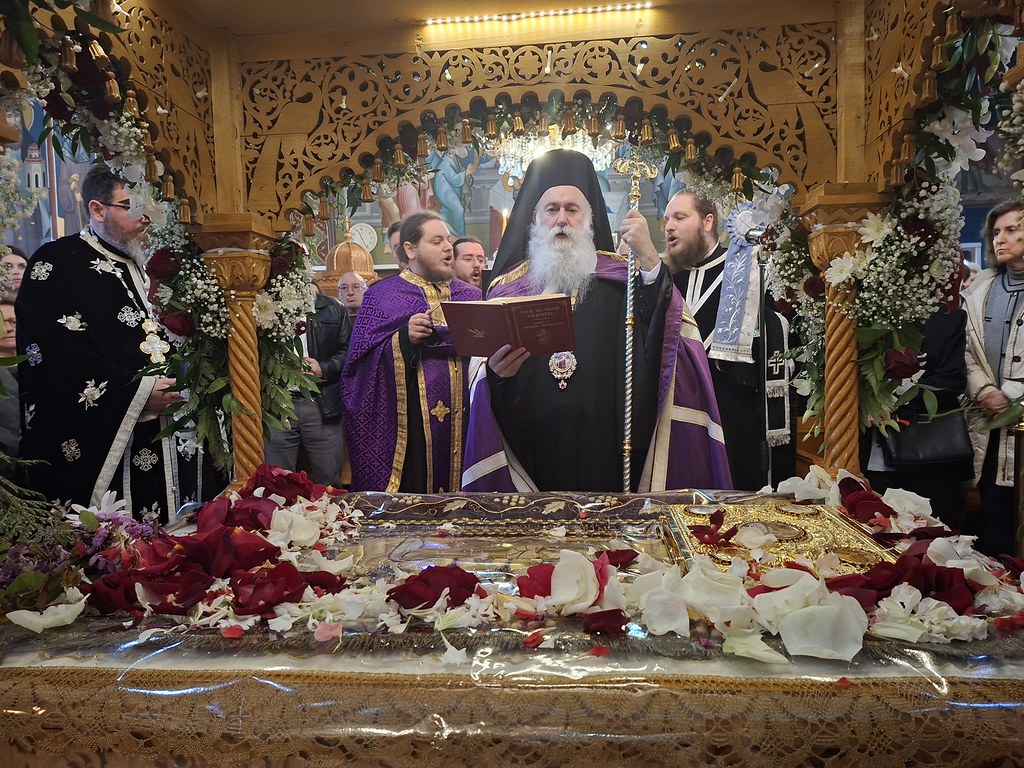 Στον Καθεδρικό Ι. Ναό του Αποστόλου Παύλου Κορίνθου τέλεσε τις Ι. Ακολουθίες των Μεγάλων Ωρών και του Εσπερινού της Αποκαθηλώσεως ο Επίσκοπος Κεγχρεών κ. Αγάπιος, μεταφέροντας τις ευχές του Μητροπολίτου Κορίνθου κ. Παύλου.