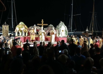 Παναγία Εκατονταπυλιανή: Το απόγευμα της Κυριακής της Σταυροπροκυνήσεως, ο Σεβασμιώτατος μετέβη στο Ιερό Προσκύνημα Παναγίας Εκατονταπυλιανής Πάρου όπου χοροστάτησε στον Δ΄ Κατανυκτικό Εσπερινό.