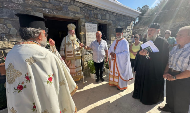τα Ιερά Εγκαίνια του Ιερού Ναού του Αγίου μεγαλομάρτυρος Χριστοφόρου στην ειδυλλιακή και πανοραμική θέση «Μόσκος», με θέα το απέραντο γαλάζιο του Κρητικού Πελάγους, της Ενορίας Έξω Μουλιανών Σητείας.