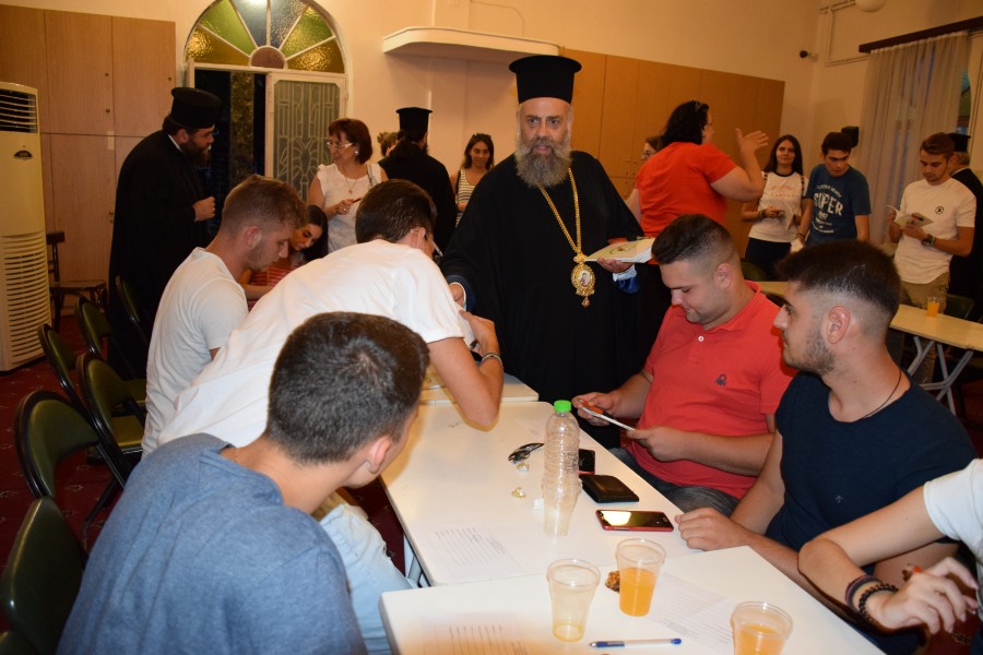 Ανταποκρινόμενοι στο κάλεσμα του Σεπτού Ποιμενάρχου τους οι νεοεισαχθέντες του Νομού μας στα ΑΕΙ και ΤΕΙ της χώρας μας συναναστράφηκαν μαζί του ανταλλάσσοντας απόψεις και σκέψεις. Τους προέτρεψε να αποκτήσουν όσες περισσότερες γνώσεις μπορούν και θα τους προσφερθούν, ώστε να τις έχουν εφόδιο στην ζωή τους. Τους τόνισε να μην ξεχνούν τον Χριστό και την εκκλησία Του και τους υπενθύμισε ότι η τοπική Εκκλησία θα βρίσκεται στο πλευρό τους. Τέλος, ευχαρίστησε όλους για την παρουσία και το Συμβούλιο του Γραφείου Νεότητος της Ιεράς Μητροπόλεως για την διοργάνωση αυτών των συναντήσεων.