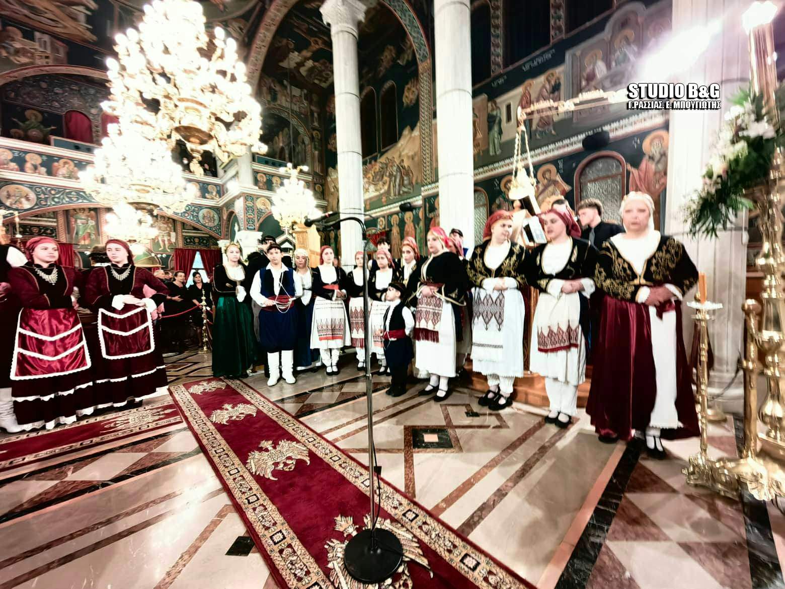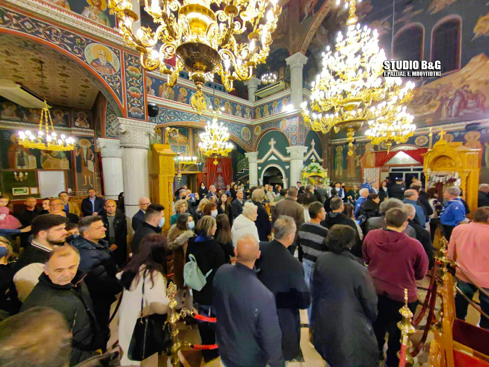 Την παραμονή της εορτής, τελέσθηκε Μέγας Αρχιερατικός Εσπερινός στον οποίο χοροστάτησε ο Μητροπολίτης Αργολίδος κ. Νεκτάριος. Στη συνέχεια, ακολούθησε η καθιερωμένη λιτάνευση της θαυματουργού ιερά εικόνας της Παναγίας συνοδευόμενη από την Φιλαρμονική Κυνοπιαστών από την Κέρκυρα ,τη φιλαρμονική του δήμου Ναυπλιέων και μέλη της Ένωσης Κρητών και Φίλων Κρήτης Ν. Αργολίδας “Ο Μίνωας”. Στις Ιερές ακολουθίες έψαλαν οι Ιεροψάλτες Κ. Ρούτουλας και Αντώνιος Ισσαρης .