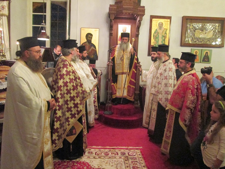 Στο τέλος του εσπερινού, πραγματοποιήθηκε λιτάνευση της αρχαίας εικόνας του Αγίου, που χρονολογείται τον 17ο αιώνα και φυλάγεται σε ειδικό προσκυνητάρι, στο κέντρο του ναού.