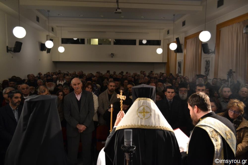 Αυτά τα λόγια απηύθυνε ο Σεβασμιώτατος Mητρ. Σύρου κ. Δωρόθεος Β’ καταφανώς συγκινημένος από την αθρόα προσέλευση των Χριστιανών η οποία δημιούργησε το αδιαχώρητο καθώς προσέτρεξαν όλοι από τις εσχατιές έως την πόλη της ιεράς νήσου Τήνου απόψε στην εκδήλωση που διοργάνωσε η Ιερά Μητρόπολη για την ευλογία της Αγιοβασιλειόπιτας στην αίθουσα εκδηλώσεων «Νικόλαος Γύζης» του Ιδρύματος Τηνιακού Πολιτισμού για την είσοδο στο ημερολογιακό έτος 2017.