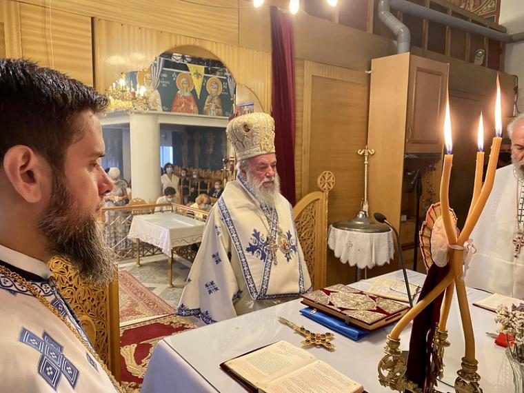 ετέλεσε τη Θεία Λειτουργία στον ενοριακό Ιερό Ναό του Αγίου Αθανασίου Κάριανης, όπου φυλάσσεται η Ιερά Εικόνα του Γενεσίου της Υπεραγίας Θεοτόκου κειμήλιο των Προσφύγων από την Μικρά Ασία, πλαισιωμένος από τον Πρωτοσύγκελλο της Μητροπόλεως Αρχιμανδρίτη π. Χρυσόστομο Μπένο, το Ιερέα του χωριού π. Ηλία Τσολακίδη και τον Διάκονο της Μητροπόλεως π. Αθανάσιο Γουσίδη.